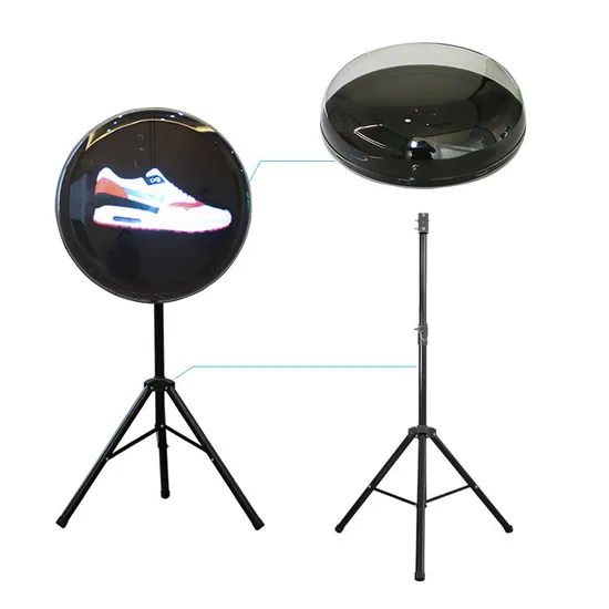 Taşınabilir 60 cm hologram fan sistemi, 180 cm profesyonel tripod ile. Vitrin tipi tasarım, kolay kurulum. İç mekan etkinlikler için ideal.